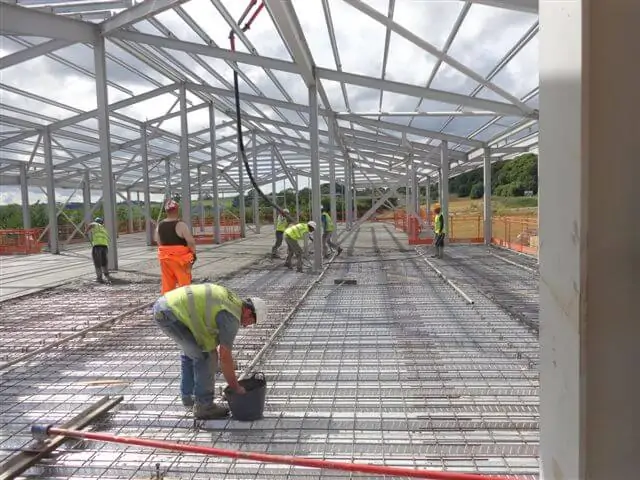 Works including the construction of concrete retaining wall structures, concrete foundations for an office block and warehouse building, construction of a ground floor and suspended floor slabs to the office building and the construction of an 11,095m² concrete yard slab.