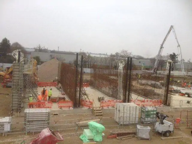 The construction of the new Anaerobic Digestion Facility in the Milton Keynes Waste Recovery Park, consisting of four main areas; the fermenter tanks, ASP bays, the compost tunnels and storage area. The fermenter tanks and compost tunnels are enclosed within 5m high walls, formed using RMD Maxima wall panels. The large ground bearing slabs mainly consist of 400mm thick sections with 900mm edge and internal thickenings between the bays and tanks. The soffit formwork for both large sections utilised the Peri Skydeck system. All ground bearing slabs are powerfloated to an AR2 finish to gain the required abrasive resistance, while the walls are finished to a smooth F2 finish. Each section of the build requires intricate planning with the different sub-contractors to incorporate the installation pipework and several cast in items.