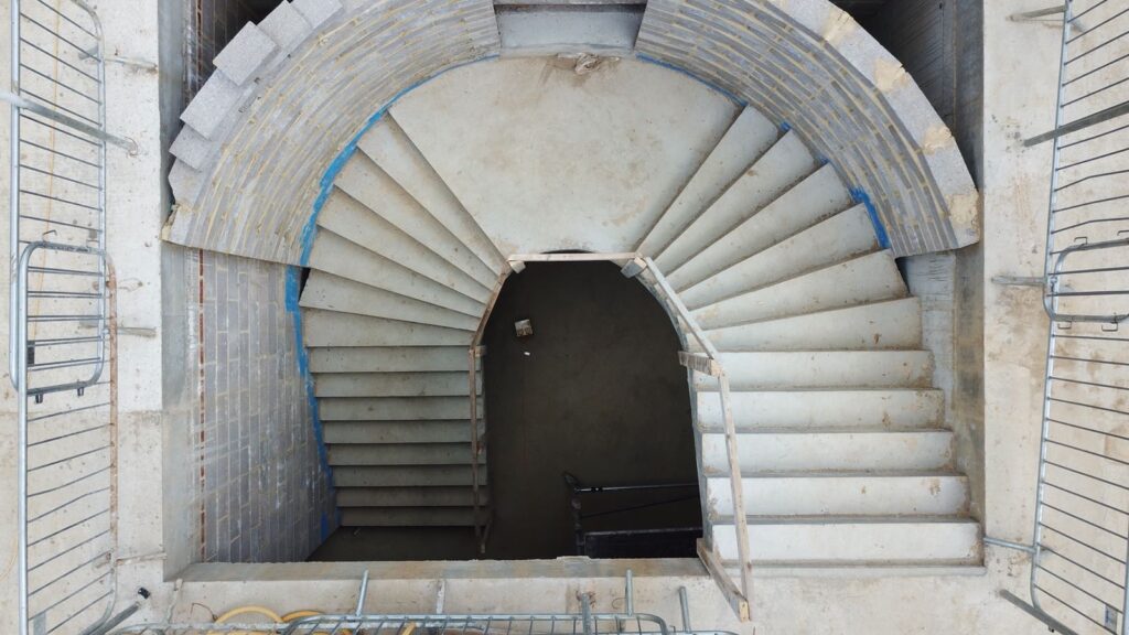 The scope of the project extended well beyond the basement, encompassing the construction of a sophisticated cast in situ stair core that is not only functional but also a true architectural statement at the very centre of the property.